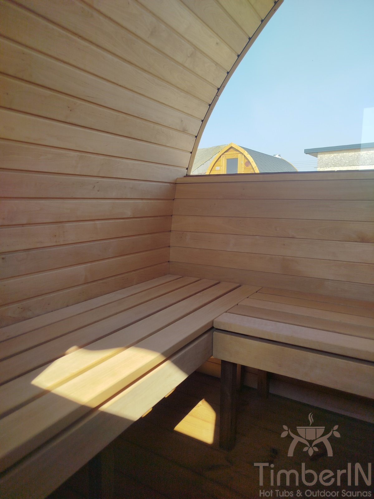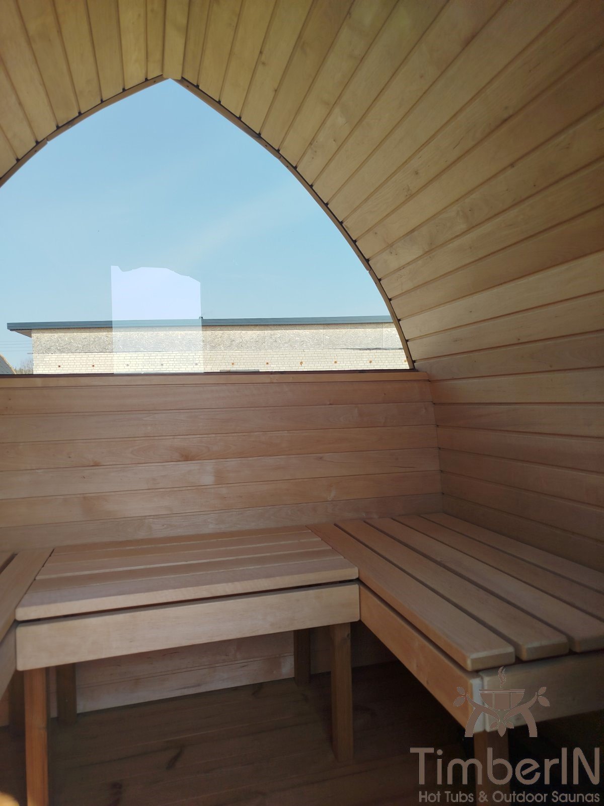 - Ventana panorámica del 50 % en la parte trasera de la sauna;