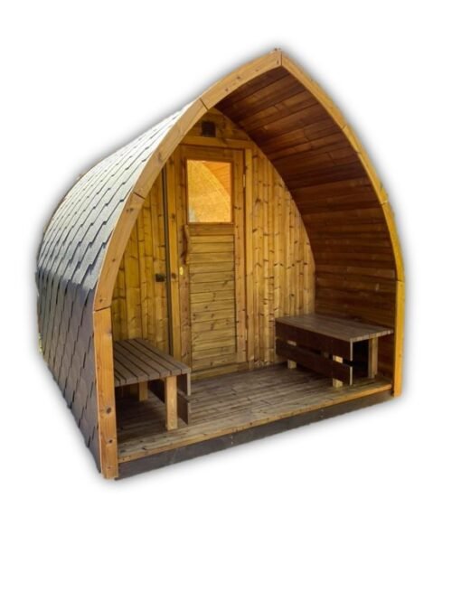 Nuestro primer modelo de sauna pod tiene 2,5 metros de largo, de los cuales 2 metros son la sauna propiamente dicha, y el medio metro restante es un toldo. Es una sauna ideal para 2 a 4 personas. Ademas, tiene una hermosa ventana panoramica en la parte trasera que transmite vistas estelares y luminosidad tambien. Usted se sorprenderá con el diseño único y estilo, y la calidad es muy impresionante cada vez.